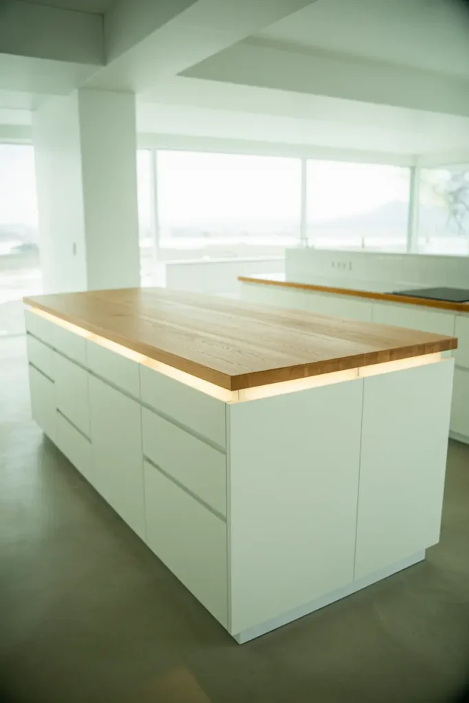 Lighting plays a key role in creating the perfect ambiance in a modern kitchen. Layered lighting is essential, combining task, ambient, and accent lights. Clean-lined fixtures, such as pendant lights above the kitchen island, add personality without overwhelming the space. Under-cabinet lighting can also be a game-changer, making tasks easier while contributing a soft glow to the room.